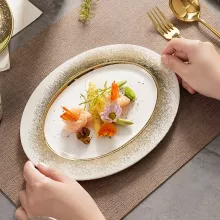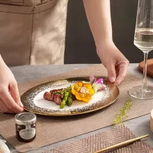 Crafted from high-quality ceramic, this plate offers a perfect balance of durability and visual appeal. The oval shape creates a natural flow that highlights food presentation, making dishes look more inviting and refined. The gradient finish adds depth and character, making every plate feel unique while still fitting seamlessly into modern, minimalist, or luxury table settings.