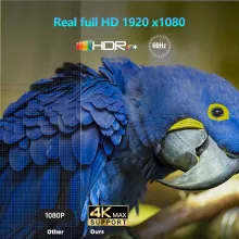 Our 1080p Full HD Portable Projector boasts a coated high-definition glass lens, providing crystal-clear images and reducing chromatic aberration. The Open GL3.2 technology ensures image rendering and brightness comparable to Apple computer monitors, giving you vibrant and lifelike visuals. The projector’s native 1920*1080p resolution, with support for 4K video input, delivers sharp and detailed pictures, making every scene come alive.