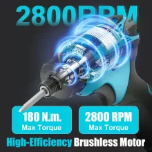 - High Torque Performance: 180N.m brushless motor effortlessly drives screws through wood, metal, and plastics.