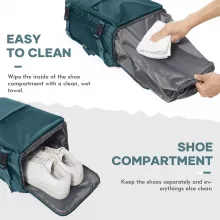 - Stay organized with dedicated pockets for shoes, phone, and accessories