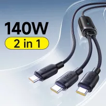 Meet the cable that replaces clutter with confidence. This 140W 2-in-1 USB-C fast charging cable is designed for people who power multiple devices every day and want speed, strength, and simplicity in one sleek solution. With a single input and dual USB-C outputs, it lets you charge two devices at once without slowing you down. Whether you are working, traveling, or relaxing at home, this cable keeps everything powered and ready.