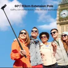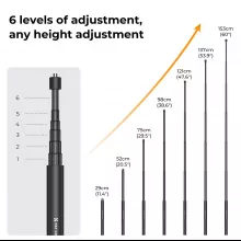 This extension pole shines in moments when you want more freedom in framing. Use it for panoramic shots, dynamic action scenes, group photos, or close-up vlogging without distortion. Its adjustable 6-level design lets you set the perfect length for hiking trails, city streets, sports, or indoor content creation. The stretch-tube system ensures smooth extension and strong tension for stable shooting even on the move.