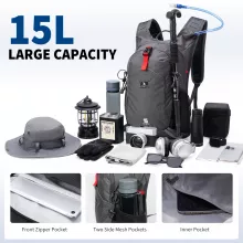 - Multi-Functional Storage: With a 15L capacity, it holds all your essentials—fits up to a 14-inch laptop, snacks, extra clothing, and hydration bladder.
