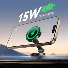 Stay focused on the road while your phone stays fully charged. This magnetic wireless car charger mount is designed to make every drive smoother, safer, and more convenient. With fast 15W wireless charging and a secure magnetic hold, your phone snaps into place instantly and starts charging right away. No cables to plug in, no distractions. Just mount, charge, and drive.