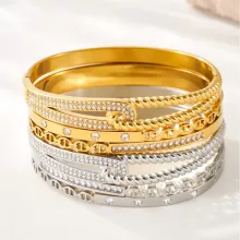 Meet the bracelet that turns everyday outfits into unforgettable statements. This 18K gold plated stainless steel bangle is designed for women who love effortless luxury with a modern edge. Smooth, polished, and beautifully inlaid with multi-shiny zircon stones, it delivers eye-catching brilliance without feeling overdone. Whether you’re dressing up for a special occasion or adding a refined touch to your daily style, this bracelet fits seamlessly into your wardrobe.