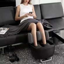 Totally in love with my new foot and calf massager. It's great at giving foot massages and has this air compression feature for the calves that just beats out other models in the same price range. There are three massage types to choose from, and I usually go for the basic one on a 15-minute auto setting. It folds up into this neat ottoman beside my sofa, which is way more aesthetically pleasing than other bulky options. It is a bit heavy, so not the easiest to move around, but the massage quality is unbeatable. There's a bit of noise, but nothing too disruptive. My husband's a fan too, but it might not fit if you have larger feet. Sliding your feet in is necessary, so it might be a challenge if bending is difficult for you.
