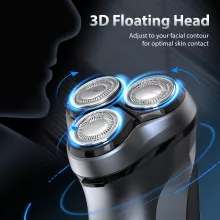 - 3D Floating Shaving Heads – Three flexible rotary heads adapt to the contours of your face, jaw, and neck for smooth, irritation-free shaving.