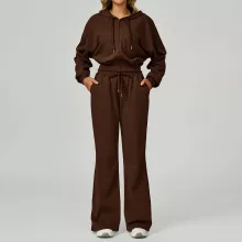 This matching set is more than just sportswear—it’s your new go-to for effortless style. The hooded sweatshirt with zip closure makes layering simple, while the straight-leg pants add a clean, modern touch. Whether you’re heading to the gym, enjoying a coffee run, or relaxing at home, you’ll feel confident and comfortable. Its timeless design and practical details make it a wardrobe essential for every season.