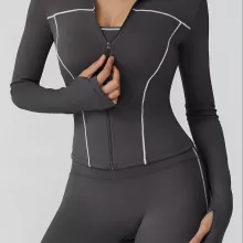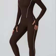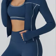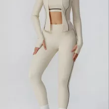 This set has been thoughtfully crafted with premium fabrics that provide flexibility and support without compromising on breathability. The jacket keeps you shielded from wind while maintaining airflow, and the high-waist yoga pants hug your body comfortably, enhancing your silhouette and boosting your confidence. The elastic material ensures a perfect fit for different body shapes, giving you freedom of movement during any activity.