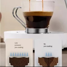 Experience quick starts with preheat times ranging from 25 to 45 seconds and choose between single or double shots for tailor-made strength with automatic stop for optimal quantity. The compact design is perfect for any countertop, complementing your kitchen or office space without overwhelming it.