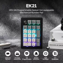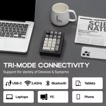 Elevate your workflow and gaming setup with this advanced 20% wireless numpad, built for those who demand comfort, precision, and versatility. Designed with a 20-key layout and a premium aluminum alloy knob, it delivers effortless control whether you’re crunching numbers, editing content, or adjusting in-game settings. Its triple-mode connectivity lets you switch between wired, Bluetooth, and 2.4GHz wireless in seconds, giving you a seamless experience anywhere you work or play.