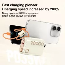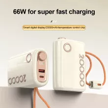 This high-capacity power bank delivers 20000mAh of energy, enough to recharge your smartphone multiple times. With an impressive 66W fast charging output and a 65W max input, you can juice up your devices quickly and recharge the power bank itself in less time. The built-in cable ensures you never have to worry about forgetting your charging cord, while the lightweight hanging design makes it easy to carry with you wherever you go. Certified to China’s strict CCC standards, it meets high safety and performance benchmarks.