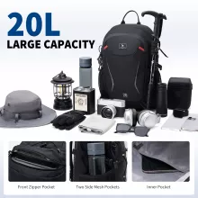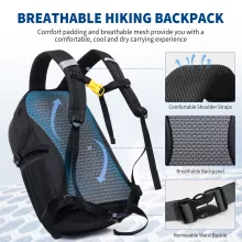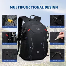 Made from high-quality, wear-resistant nylon, this backpack offers superior protection against the elements while remaining incredibly light at just 1.3 lbs. The breathable mesh padding and ergonomic back panel ensure comfort even during long hours of wear, keeping your back cool and dry. Plus, the portable hydration system with a water outlet on the shoulder strap makes it easy to stay refreshed on the go.
