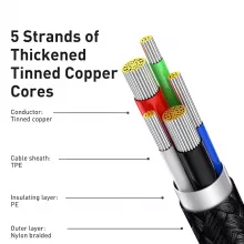 This cable is made with five strands of thickened tinned copper cores for strong conductivity and reduced resistance. The reinforced zinc alloy joints resist wear, oxidation, and heat buildup, while the premium nylon braided exterior offers excellent flexibility and long-term durability.