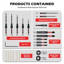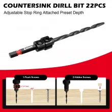 Upgrade your woodworking projects with this all-in-one 22-piece countersink drill bit kit. Designed for precision and efficiency, this kit is perfect for creating clean, professional-looking holes in any wood surface. Whether you’re a DIY enthusiast or a seasoned carpenter, this set has everything you need for drilling, countersinking, and counterboring—all in one convenient package.