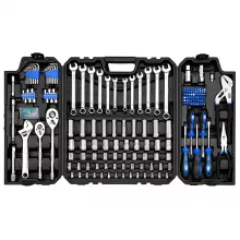 This set includes a full range of SAE and metric sockets, 1/4″, 3/8″, and 1/2″ drives, plus an adjustable wrench, pump pliers, long nose pliers, ratchets, and a wide selection of screwdriver bits including Phillips, slotted, star, and more. Whatever the job calls for, this kit has you covered.