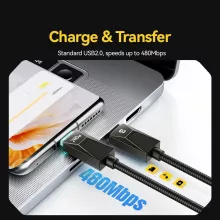 The cable features a robust design that combines fast charging with seamless data transfer. With a powerful 240W charging capability, it supports fast charging up to 5A, ensuring that even your high-powered devices get charged quickly and safely. Thanks to the 480Mbps data transfer rate, you can sync your devices without interruption, making this cable an essential accessory for busy tech users.