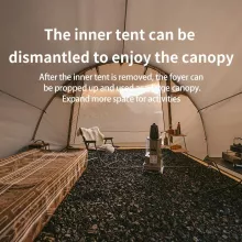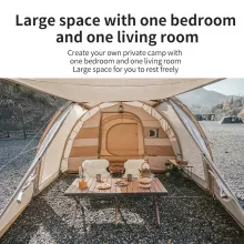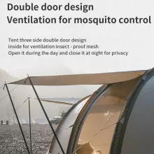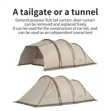 What sets our tent apart is its unique car tail tunnel design, providing an additional space for storage or an extended living area. This feature makes it perfect for car camping trips, offering convenience and flexibility. The tent is also equipped with a removable partition, allowing for customizable space utilization.