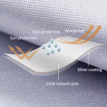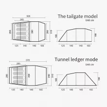 Our tent boasts a robust construction with a focus on weather resistance and space. The external tent is made from 150D Polyester Oxford Silver-Coated Cloth with a PU2000mm waterproof rating, ensuring you stay dry and comfortable. The inner tent, crafted from 63D 210T Polyester Cloth, offers a cozy retreat after a day of exploration. With a sizeable footprint of 570x310x195cm and an inner height of 195cm, this tent offers ample room for 3-4 people, making it ideal for families or small groups.