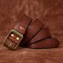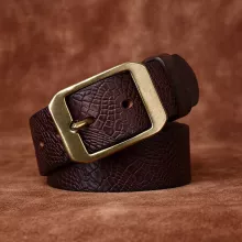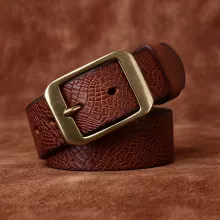 Made from 100% genuine cowhide leather, this belt is crafted for durability and long-lasting use. The 3.8 cm width provides a robust look that pairs beautifully with jeans or trousers. Featuring a stunning embossed pattern and a classic copper buckle, this belt is both fashionable and functional. It’s designed to complement any outfit, making it an essential accessory for any man’s wardrobe.