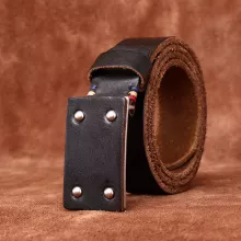 Crafted from 100% genuine cowhide leather, this belt is built to withstand the test of time. The robust 3.8 cm width not only provides ample support but also adds a rugged charm that complements your jeans or dress pants effortlessly. The smooth copper buckle is a classic touch, adding elegance to the overall design. Designed to age beautifully, this belt will develop a unique character over time, making it a timeless piece in your collection.