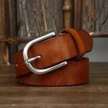 Crafted from premium cowhide leather, this belt ensures durability and longevity. The sturdy construction features a solid pin buckle designed for easy adjustments, allowing you to find the perfect fit. The sturdy width of 3.8 cm not only offers excellent support but also adds a rugged charm that complements your jeans or trousers perfectly. Its classic solid pattern showcases a timeless look, making it an essential part of any wardrobe.