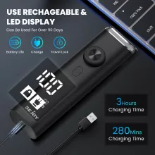 This electric hair trimmer is cordless and rechargeable, allowing you to use it anywhere without being tethered to an outlet. It boasts a generous 240-minute runtime and quick charging capabilities, with a full charge taking only up to 2 hours. The included USB-Type C cable makes it easy to charge while on the go, whether you’re traveling or simply grooming at home.