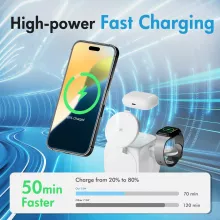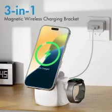 - 3-in-1 Magnetic Charging: Simultaneously charges iPhone, AirPods, and Apple Watch on a single platform.