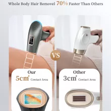 The device uses advanced IPL (Intense Pulsed Light) technology to break the hair growth cycle safely and effectively. Choose between manual mode for smaller areas like underarms, bikini line, lips, and fingers, or automatic mode for larger areas such as legs, arms, back, and stomach. Its ergonomic design and continuous light mode make full-body treatments up to 30% faster than standard hair removal devices, saving you time without sacrificing results.