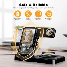 Take the stress out of daily charging. Upgrade to a smarter, cleaner, and faster way to power your essential devices. Add this 3-in-1 magnetic wireless charging station to your setup today and enjoy effortless charging, anytime.