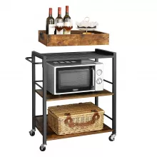 Bring practical charm into your home with this versatile 3-tier kitchen serving cart. Designed to simplify meal prep, serving, and storage, it features a warm rustic wood finish paired with a sleek black steel frame—perfect for adding both function and personality to any space. Whether you’re hosting guests, organizing your coffee station, or expanding your kitchen storage, this cart delivers the flexibility you need every day.