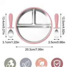 Make mealtime stress-free and enjoyable with this 3PCS Baby Feeding Set, carefully crafted to meet the needs of both babies and parents. Featuring stainless steel bowls, detachable suction bases, and soft silicone utensils, this set combines durability with safety. Free from BPA, PVC, phthalates, latex, and nitrosamines, it’s a worry-free choice for your baby’s everyday feeding. The set includes a feeding bowl, a training fork, and a spoon — perfect for helping your little one learn to eat independently.