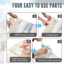 - Vacuum Compression System: Comes with a manual pump to save space and keep your belongings neatly packed.