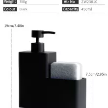 Upgrade your sink area with this 450ml Black Dish Soap Dispenser with Sponge Holder and enjoy the perfect balance of design and functionality. Keep your kitchen looking tidy, your soap accessible, and your style effortlessly elevated. Don’t wait—add this modern essential to your home today and make every cleaning task a pleasure.