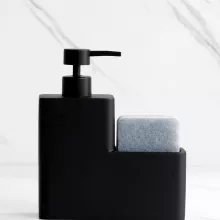 - Combines two essentials—soap and sponge storage—in one sleek unit.