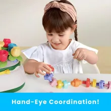 This Montessori-inspired toy combines four early-learning activities in one compact design. Children can sort blocks, match shapes, thread beads, and practice stacking — all essential skills that support their cognitive and motor development. Sized just right for small hands, each piece is crafted for safe, frustration-free play. Whether used during quiet time, learning sessions, or playdates, this toy naturally encourages focus, problem-solving, and creativity.