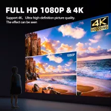 Oh man, let me tell ya, this projector is just out of this world! It's like having a personal movie theater right in your living room. The K resolution? Just wow. You can see every detail so clearly it's like you're part of the action on screen. Watching movies has never been more exciting or immersive. Everything from the colors to the sharpness is top-tier and it completely transforms your viewing experience into something truly cinematic. I mean, who needs to go out to an cinema when you have this bad boy at home? But wait there's more! It doesn't stop at just playing Blu-ray discs or DVDs - no sirree! This little gem also comes with smart WiFi features which means streaming shows and movies online is as easy as pie. Forget about those pesky wires or complicated setups; all you need is a strong WiFi connection and voila – endless entertainment! This feature alone makes it super convenient especially for someone like me who loves binge-watching my favorite series after a long day’s work. And don’t get me started on how amazing sports games look on this thing – talk about feeling like you’re in the stadium! And if that wasn't enough, its sleek design fits perfectly into any modern decor without being obtrusive while still making its presence known. So yeah, if you're a tech enthusiast looking for new gear to up your game (or even if you're not), then trust me when I say: You definitely want one of these projectors in your life. No ifs, buts or maybes - it’s simply too good not to have!
