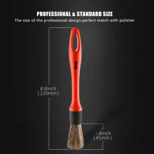 Each brush in this set is crafted with a specific purpose in mind. Featuring a combination of natural boar hair, microfiber, and durable synthetic fibers, you always have the right tool for the job. The soft yet densely packed bristles lift dirt effectively while staying gentle on paint, leather, plastic, and chrome. With a total length of 8.8 inches and a 1.8-inch brush head, these brushes easily reach tight spaces, deep crevices, and narrow gaps where dirt loves to hide.