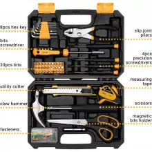Be ready for everyday repairs and DIY projects with this complete 50-piece household hand tool kit. Designed for convenience, durability, and versatility, this set is perfect for apartments, dorm rooms, garages, and even on-the-go in your car trunk. Whether you need to hang a picture, assemble furniture, or handle basic maintenance, this kit has all the essential tools you need in one organized storage case.
