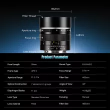 Unlock your creative potential with the 50mm F1.2 APS-C Frame Manual Prime Camera Lens, designed for photographers who demand exceptional quality in every shot. Whether you’re capturing portraits, landscapes, or fast-paced sports, this lens provides the sharpness, brightness, and beautiful bokeh you’ve been looking for. With a large f/1.2 aperture, it excels in low light conditions, giving you the power to shoot in a variety of environments, from wedding venues to nightscapes.