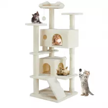 Made from high-quality wood and soft plush fabric, this cat tree combines comfort with durability. The thick, reinforced base ensures exceptional stability, while the plush covering keeps every perch and condo irresistibly cozy. Despite standing tall at 54 inches, it takes up just 20 x 20 inches of floor space—perfect for apartments or smaller rooms. Plus, it’s designed to safely accommodate multiple cats at once.