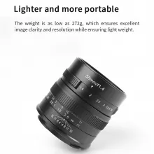 With a large aperture of f/1.4, you can achieve beautiful background blur (bokeh) that will make your subject stand out with breathtaking sharpness. Its manual focus ensures precise control, allowing you to craft the perfect shot every time. Compatible with Sony E, Canon EOS-M, Fuji X series, and Micro 4/3 cameras, this lens is versatile and ready to adapt to your photography needs.