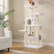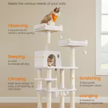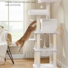 What makes this cat tree special is how many needs it meets in one compact design. It keeps cats entertained, supports natural behaviors like scratching and climbing, and helps protect your furniture at the same time. The neutral cream color blends beautifully with most home décor, so it looks good in your space while keeping your cat happy. With a total weight capacity of up to 103 lb, it’s suitable for single or multiple cats to enjoy together.