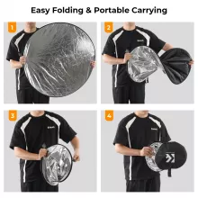 Crafted with high-quality durable fabric, this reflector is built to last while remaining easy to handle. The round design and lightweight construction make it perfect for on-the-go shoots, allowing you to fold it quickly and carry it effortlessly in its included storage bag. Despite its portability, it provides consistent and reliable lighting effects, making it a must-have for any photography enthusiast.