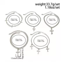 Elevate Your Style with the 5Pcs Cross Pendant Wrist Bracelets Set