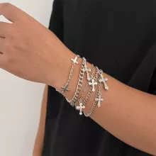 Looking for a fresh and bold addition to your jewelry collection? The 5Pcs Cross Pendant Wrist Bracelets Set is the perfect way to express your unique style. Featuring five chunky link chain bracelets adorned with trendy cross pendants, this set is a must-have for fashion-forward women. Whether you’re heading out for a casual day out, a night on the town, or want to add a little edge to your everyday look, these bracelets bring the perfect mix of elegance and street-style flair. Crafted from high-quality alloy, each piece in this set offers durability and a sleek, modern finish, making it suitable for all occasions.