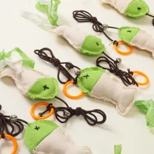 Keep your furry friend entertained for hours with the Green Linen Tassel Fish Cat Toy Set. Designed to awaken your cat’s natural instincts, this adorable set of five tassel fish toys brings endless joy and exercise to your pet’s daily routine. Each toy features a soft linen fish with a dangling tassel tail and a convenient finger loop rope, letting you easily join in on the fun. Whether your cat loves to pounce, chase, or chew, these interactive toys will quickly become their new favorite companions.