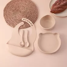 Turn everyday feeding into a smooth, joyful experience with this adorable 5-piece bear-shaped silicone baby feeding set. Designed for toddlers learning to eat independently, this set includes a suction plate, spoon, fork, bib, and cup lid. The playful bear design captures your child’s attention, while the clever suction base keeps the plate in place, preventing messy spills.