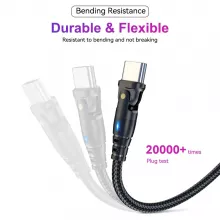 This high-performance USB C cable isn’t just another charging accessory—it’s a game-changer. The 180° rotating elbow design makes it easy to plug in your device even in awkward angles, while preventing cable strain and enhancing the longevity of the cord. The LED indicator adds a stylish flair while ensuring you can always monitor your charging progress.