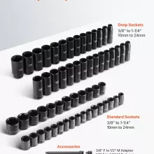 Whether you need deep or standard sockets, this set has you covered. It includes both SAE and metric sizes, along with extension bars, a ratchet handle, universal joint, and adapters—everything you need for versatile applications. Packed neatly in a rugged storage case, your tools stay organized, protected, and ready for transport to any job site.